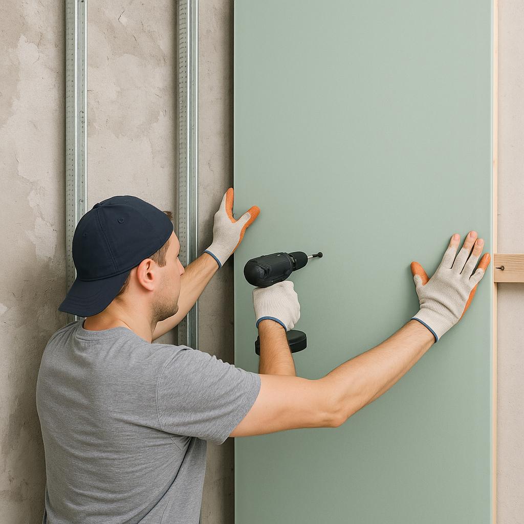- листы гкл (если планируется монтаж в помещении с повышенной влажностью выбирайте зеленые или голубые листы — они маркируются как «влагостойкие»);
