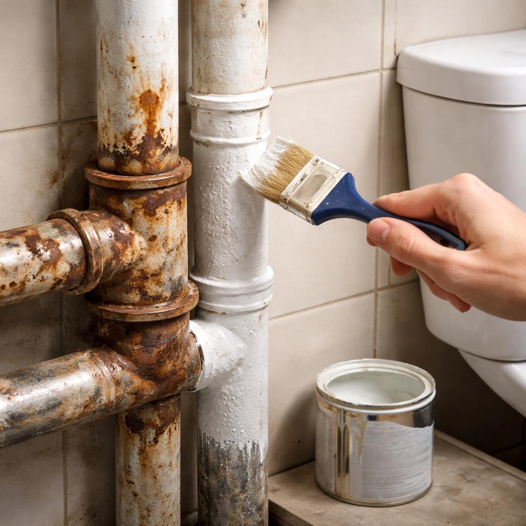 Покраска не решает структурных проблем. Если труба уже истончена коррозией, никакое покрытие не вернёт ей прочность. Более того, плотный слой краски может скрыть опасные участки, из-за чего проблема станет заметной только при протечке.