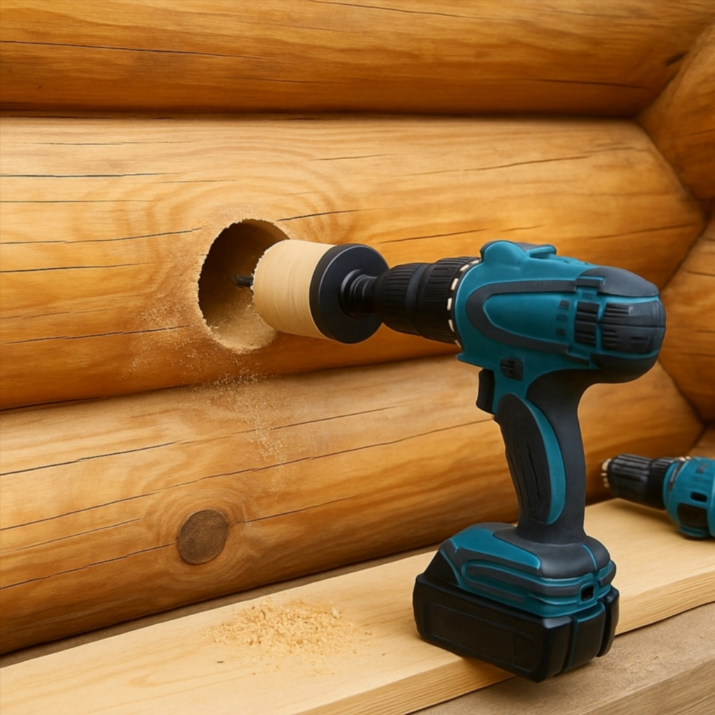 • Сухое бревно (естественной влажности или камерной сушки) требует более прочного инструмента, особенно при сверлении больших отверстий.