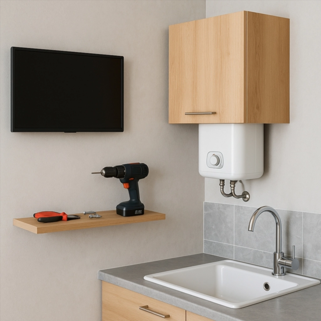 Эти устройства тяжелы и часто навешиваются на стену. При этом они не только висят, но и создают динамическую нагрузку: телевизоры могут поворачиваться, кондиционеры — вибрировать, а бойлеры наполняются водой. Неправильное крепление может привести к падению и серьезным последствиям.