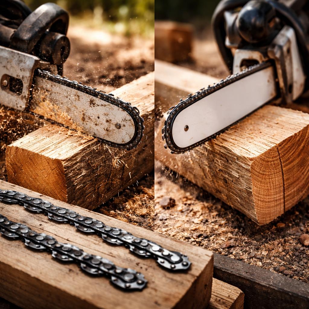В домашнем ремонте бензопила чаще всего используется не на сыром лесу, а на сухом брусе, доске, старых балках, элементах кровли или временных конструкциях. Здесь важен не столько быстрый пропил, сколько управляемость и чистота. Тип цепи напрямую задаёт характер реза: агрессивный, мягкий, рваный или спокойный. Именно поэтому одинаковая по шагу и длине цепь может давать принципиально разные ощущения в работе и разные результаты на материале.