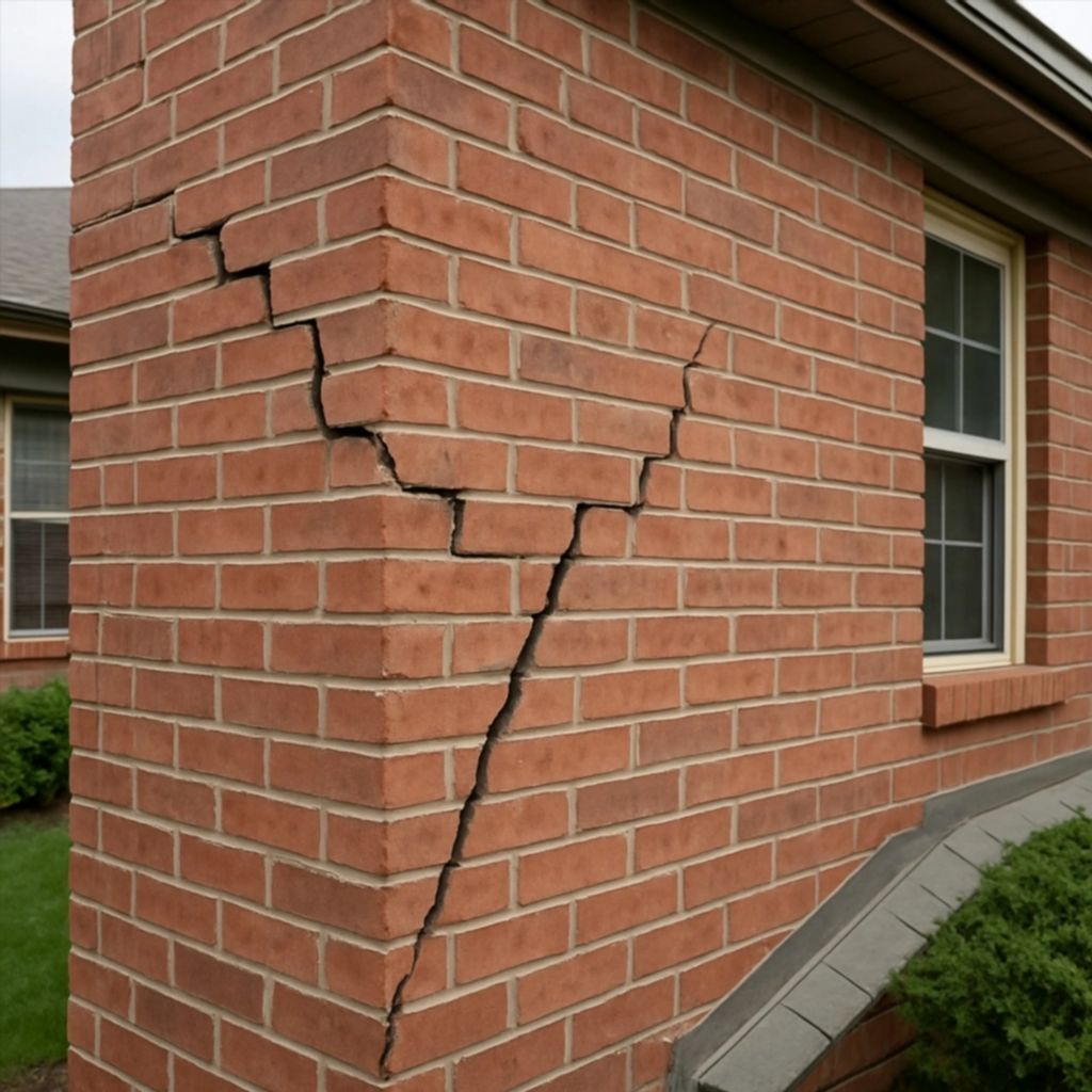 - Обычно указывают на неравномерную осадку фундамента или нарушение деформационных швов.